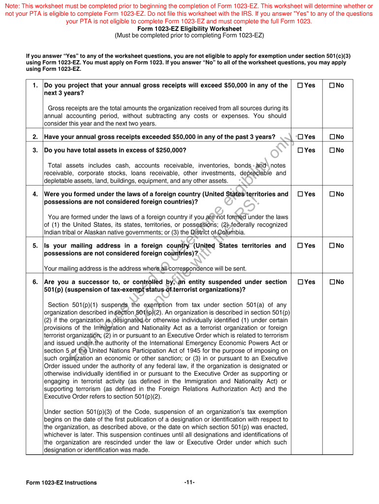 Form 1023 Ez Eligibility Worksheet Yooob Db excel