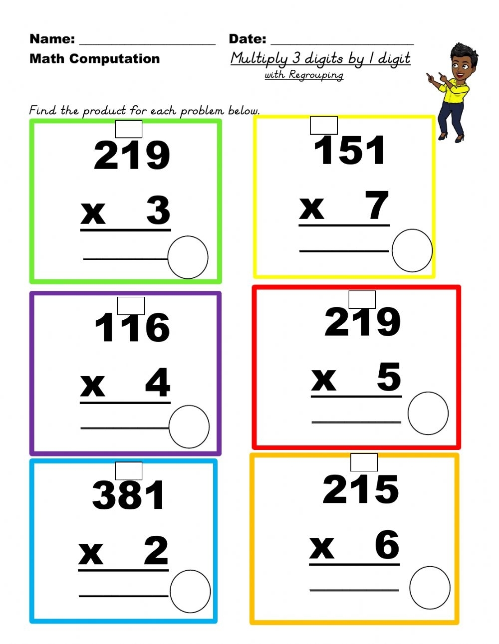 3 Digit By 1 Digit Multiplication Worksheets Multiplication Worksheets