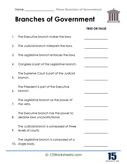 A worksheet focusing on the three branches of government can help students grasp the roles and responsibilities of each branch. By completing activities, such as identifying the functions of the executive, legislative, and judicial branches, students can deepen their understanding of how our government operates.