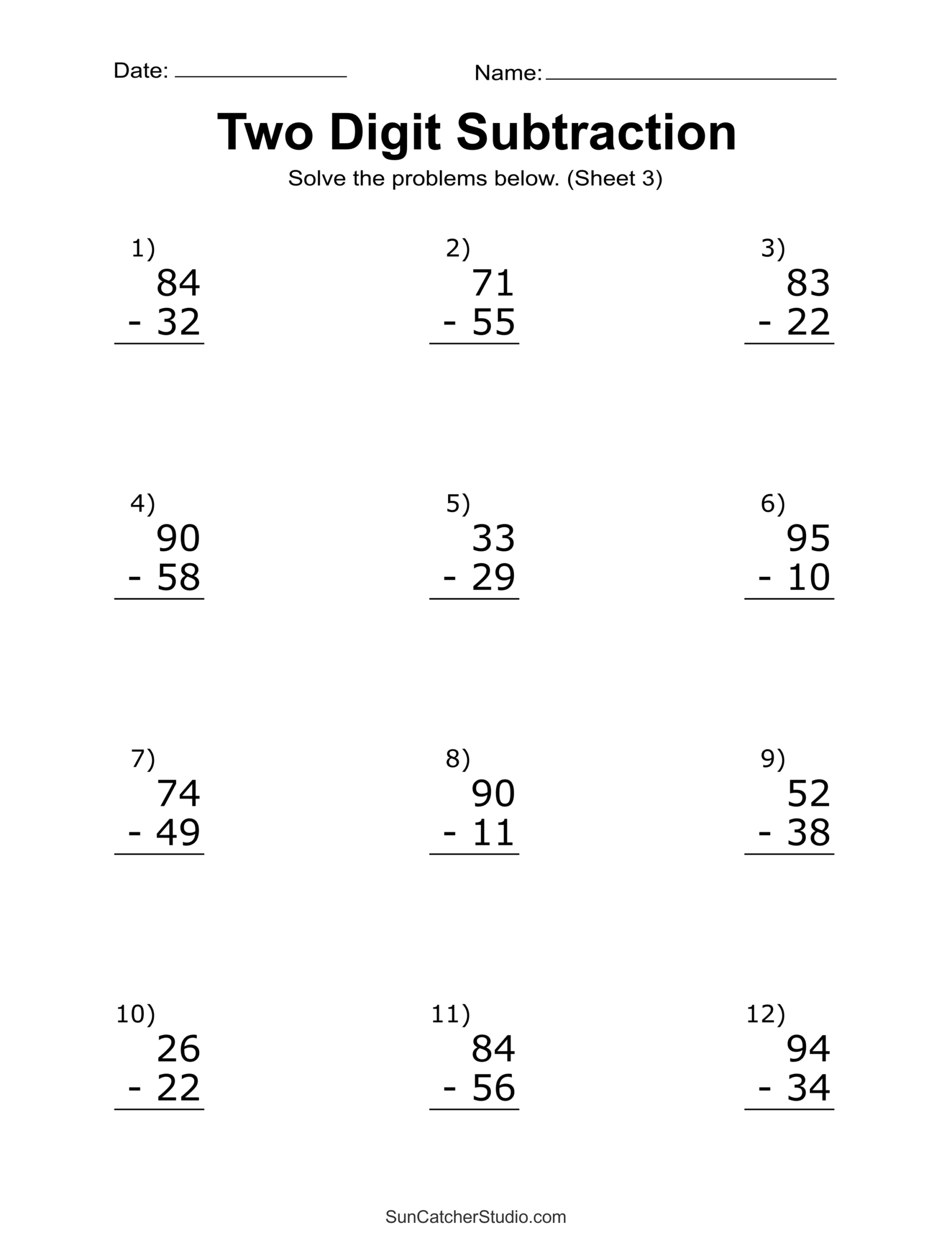 3 digit subtraction worksheets typically include problems that involve subtracting numbers with three digits. These worksheets can range in difficulty, with some including regrouping and borrowing. By practicing with these worksheets, students can improve their ability to subtract larger numbers accurately and efficiently.