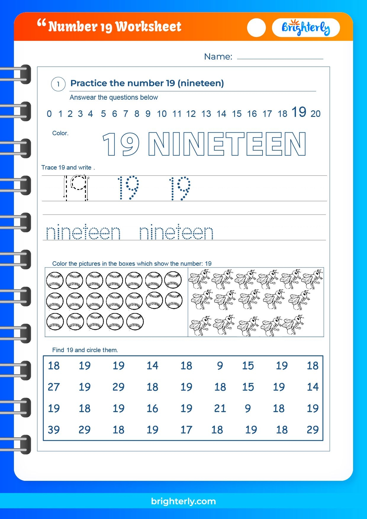 Free Printable Number 19 Nineteen Worksheets For Kids PDFs