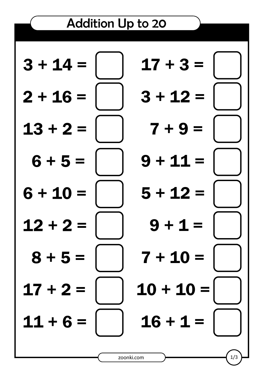 Mathematics is a fundamental skill that children need to develop from a young age. Addition is one of the basic mathematical operations that students learn early on. To help children practice and master addition to 20, worksheets are a valuable resource. These worksheets provide a structured way for students to practice adding numbers up to 20 in a fun and engaging manner.