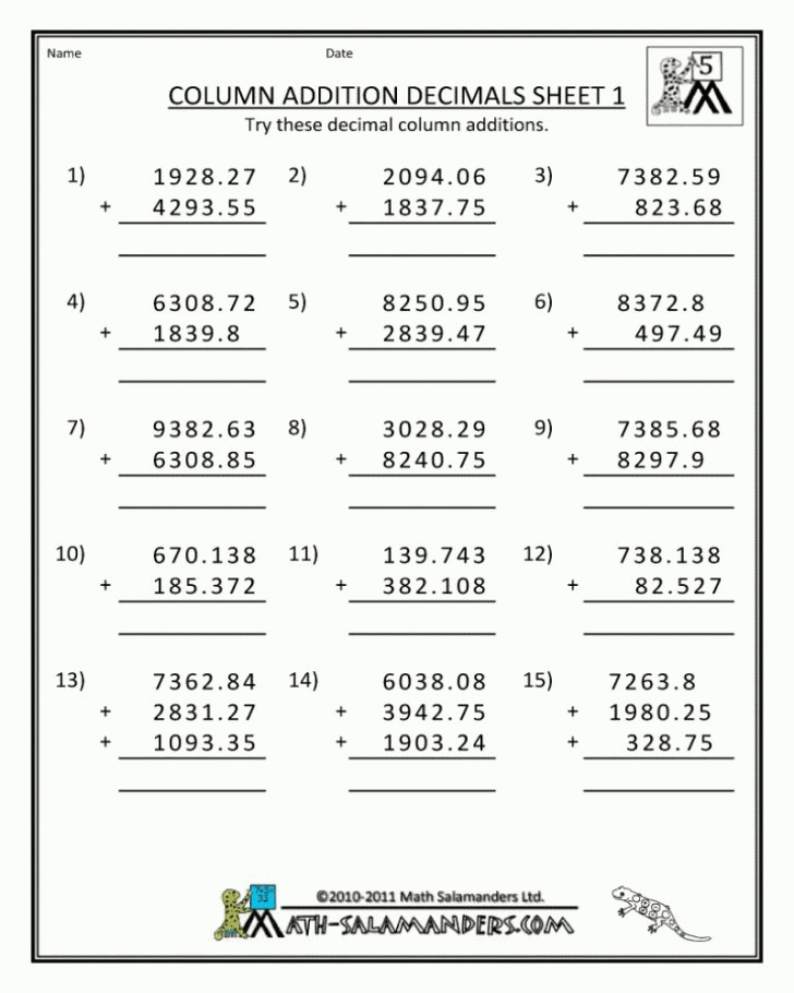 Additionally, grade 5 addition worksheets can be customized to suit the individual needs of students. Teachers can tailor worksheets to focus on specific areas of weakness or provide extra practice on certain types of addition problems. This personalized approach ensures that each student receives the support they need to master addition and excel in mathematics.