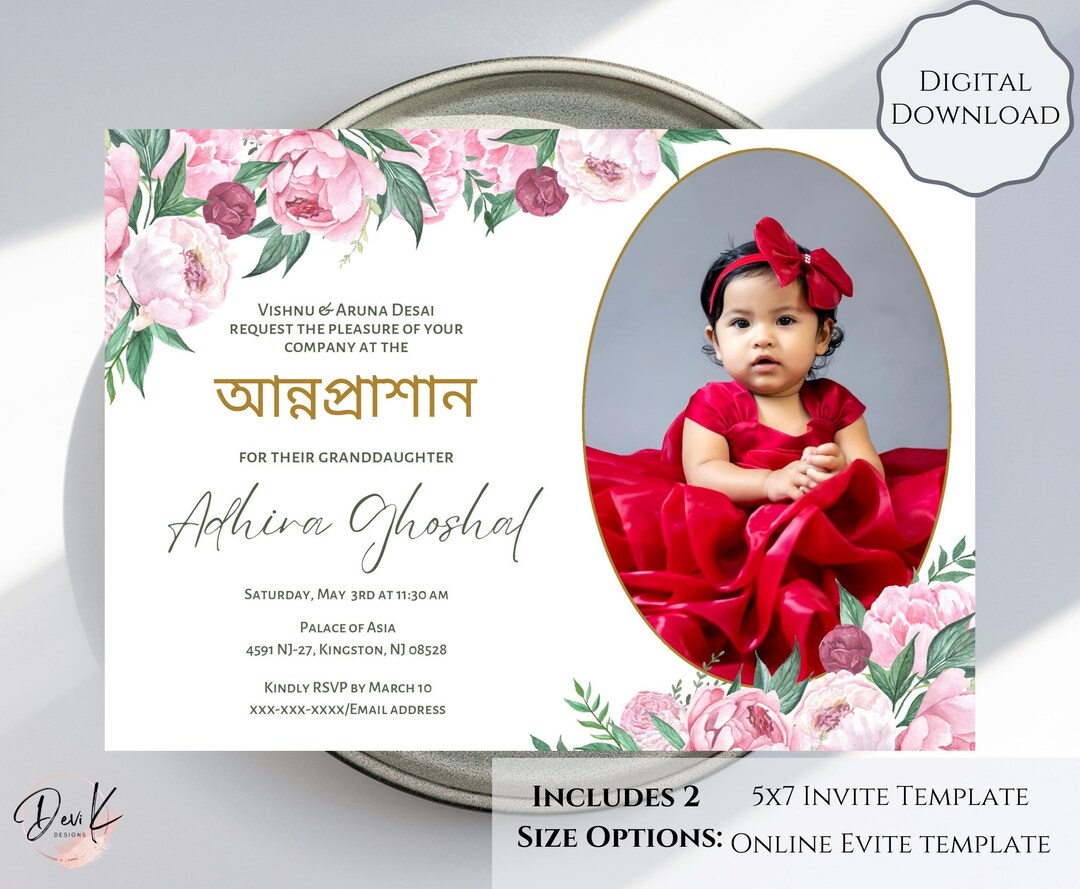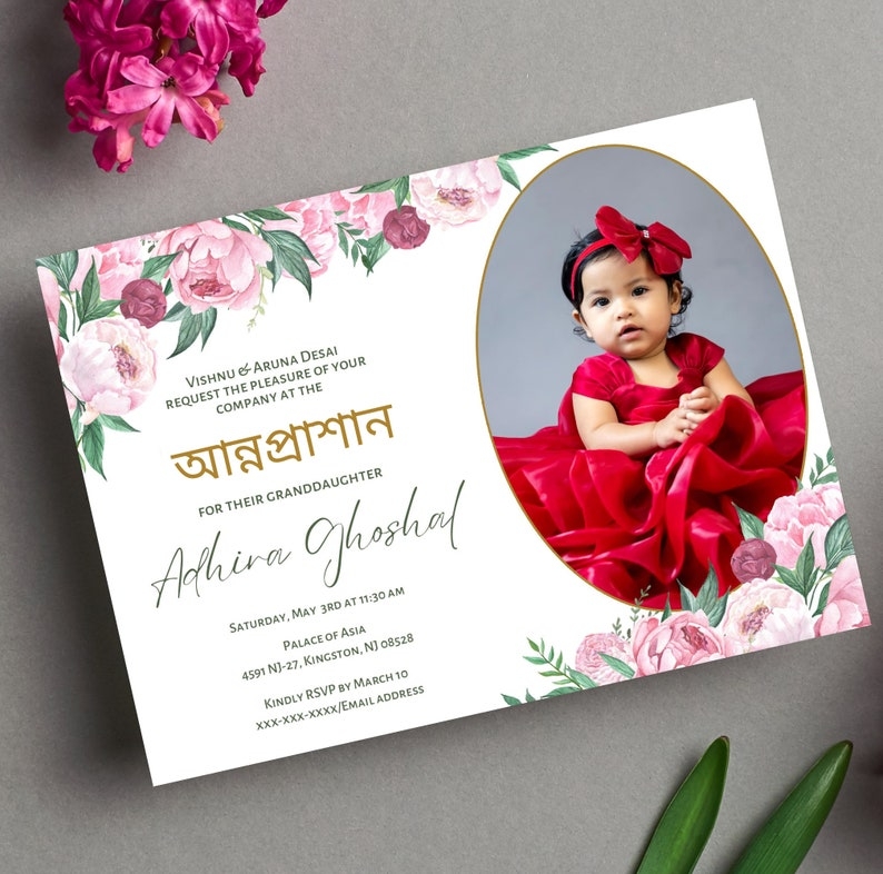 When choosing an Annaprasana invitation template, consider incorporating traditional elements such as images of deities, auspicious symbols, or vibrant colors that represent joy and prosperity. You can also personalize the invitation by adding details such as the child’s name, date, time, and venue of the event.
