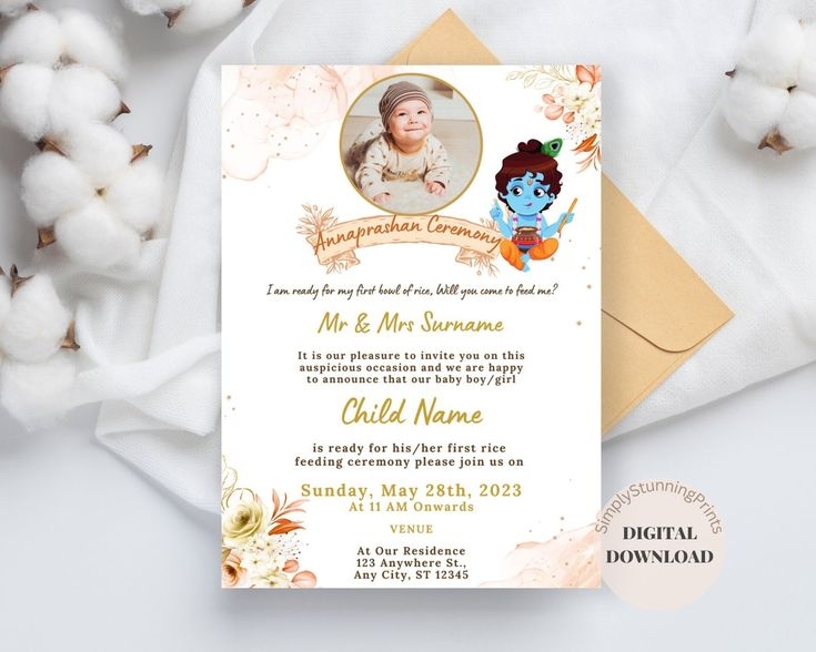 Rice Feeding Ceremony Invitation Card Annaprashan Ceremony Invite Rice