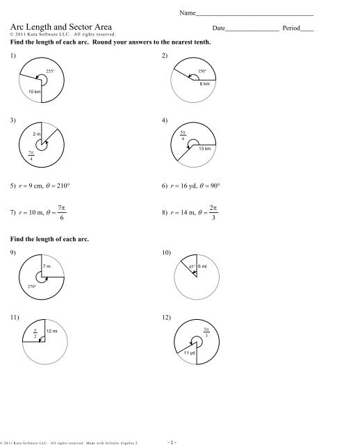 These worksheets typically include various exercises such as finding the arc length given the radius and central angle, determining the central angle given the arc length and radius, or solving problems involving sectors of circles. By working through these worksheets, students can improve their understanding of arc length and develop their problem-solving skills.