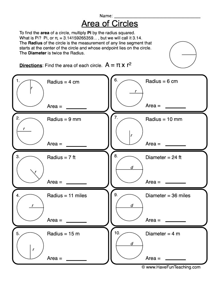 Area Of Circles Worksheet