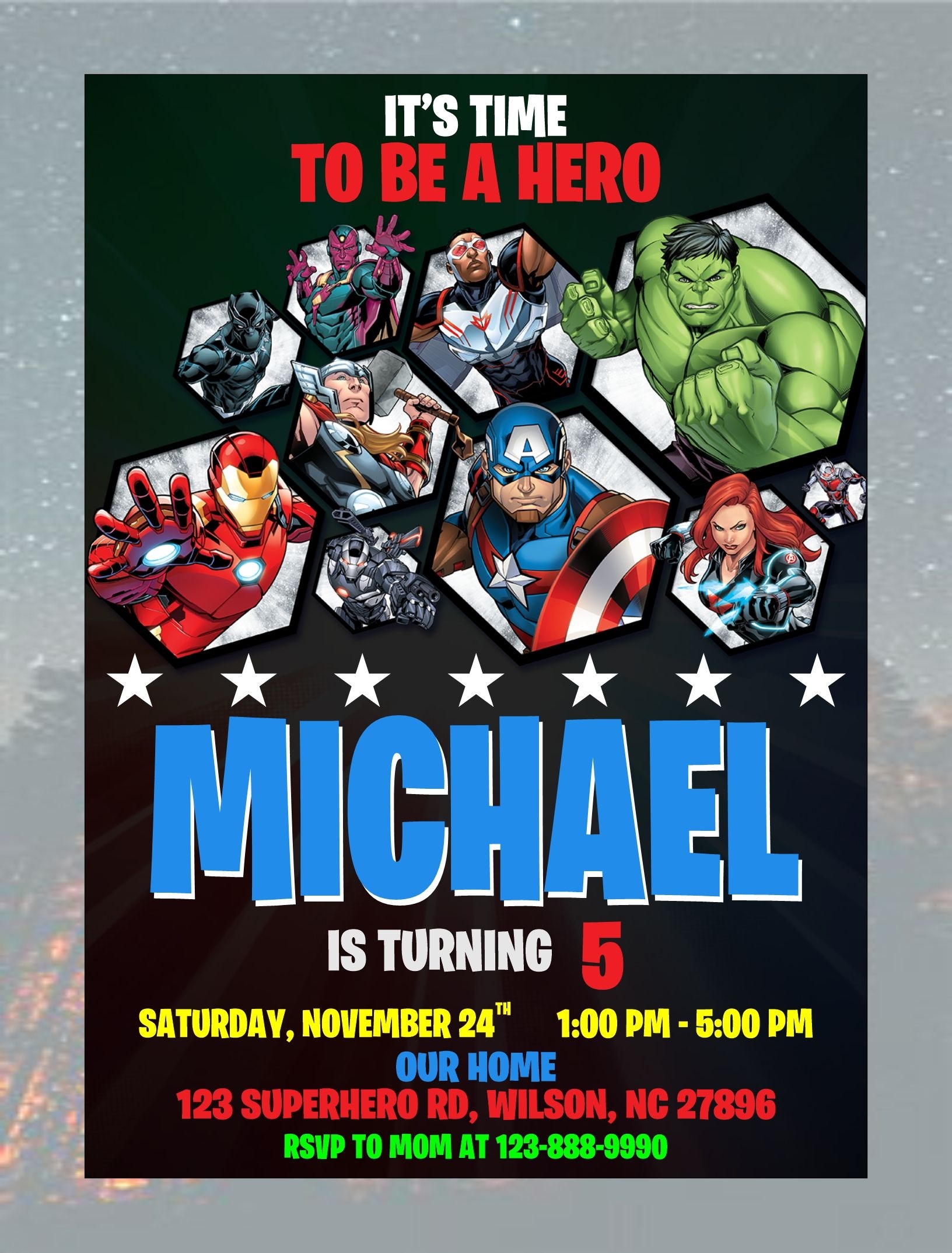Whether you’re celebrating a birthday, graduation, or just want to have a superhero-themed get-together, our Avengers party invitation template is perfect for any occasion. You can personalize the template with your name, party date and time, location, and any other details you want to include. Once you’ve filled it out, you can print it out or send it digitally to your guests.
