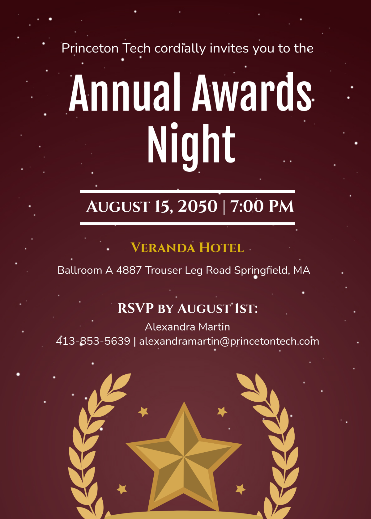 Personalize your awards night invitation template by adding your organization’s logo or a custom message to make it unique and memorable. You can also customize the colors, fonts, and layout to match the branding of your event and create a cohesive look. A well-designed invitation will not only impress your guests but also set the stage for a successful and memorable awards night.