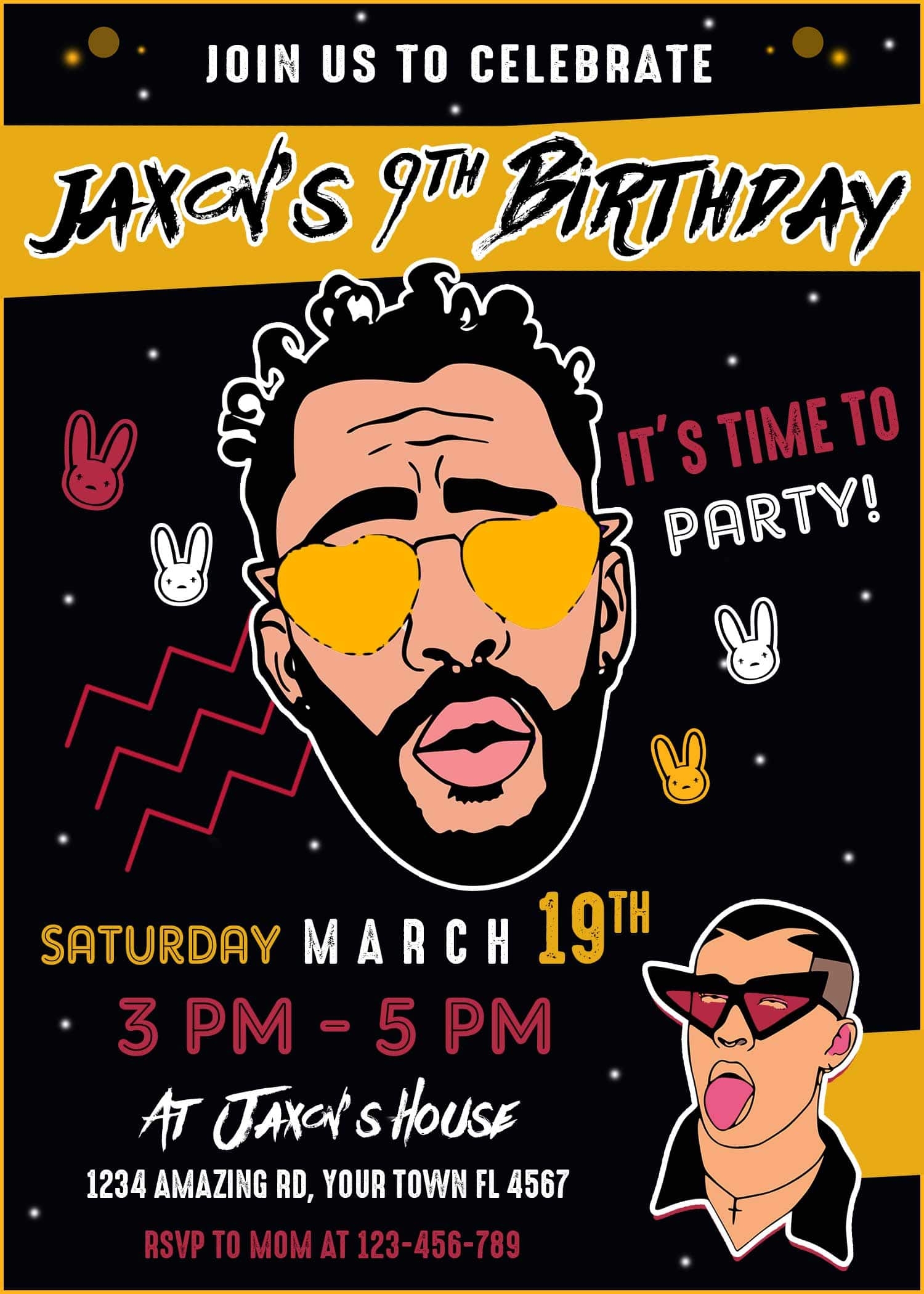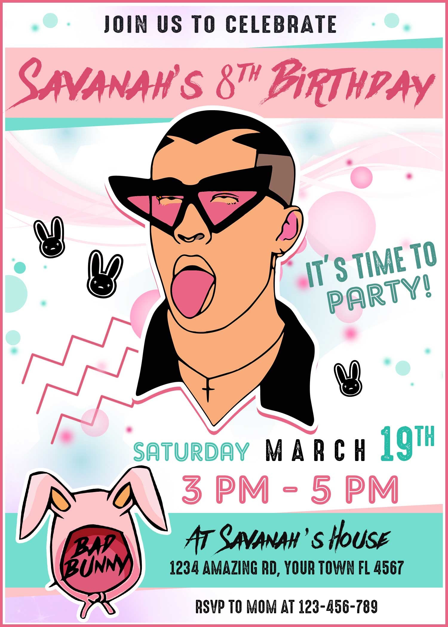 Bad Bunny is a popular Latin artist known for his catchy songs and unique style. If you want to throw a birthday party that is as cool and trendy as Bad Bunny himself, these invitation templates are the way to go. They are easy to customize and will help set the tone for an unforgettable celebration.