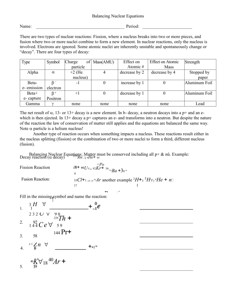 Download and Print balancing nuclear equations worksheet Listed below