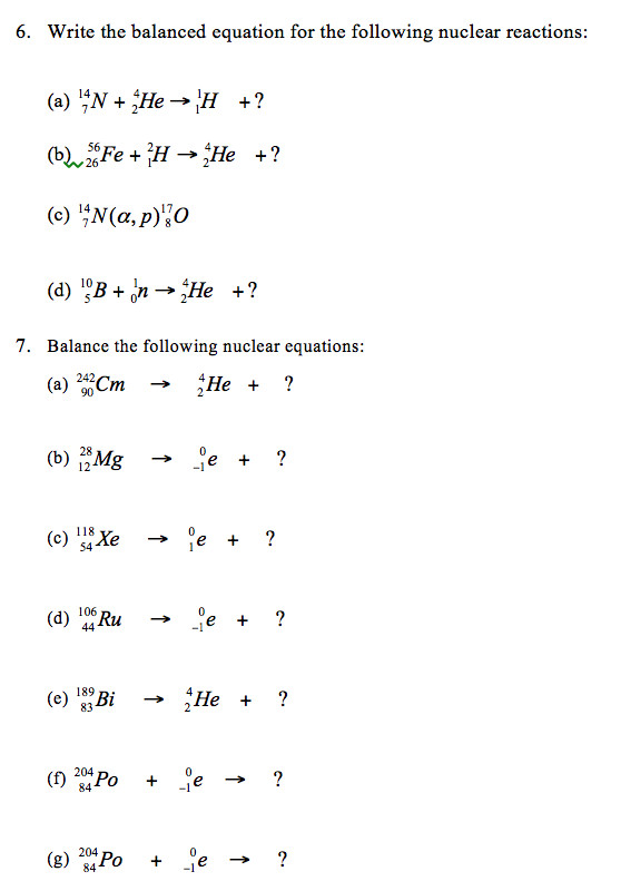 Balancing Nuclear Equations Worksheet