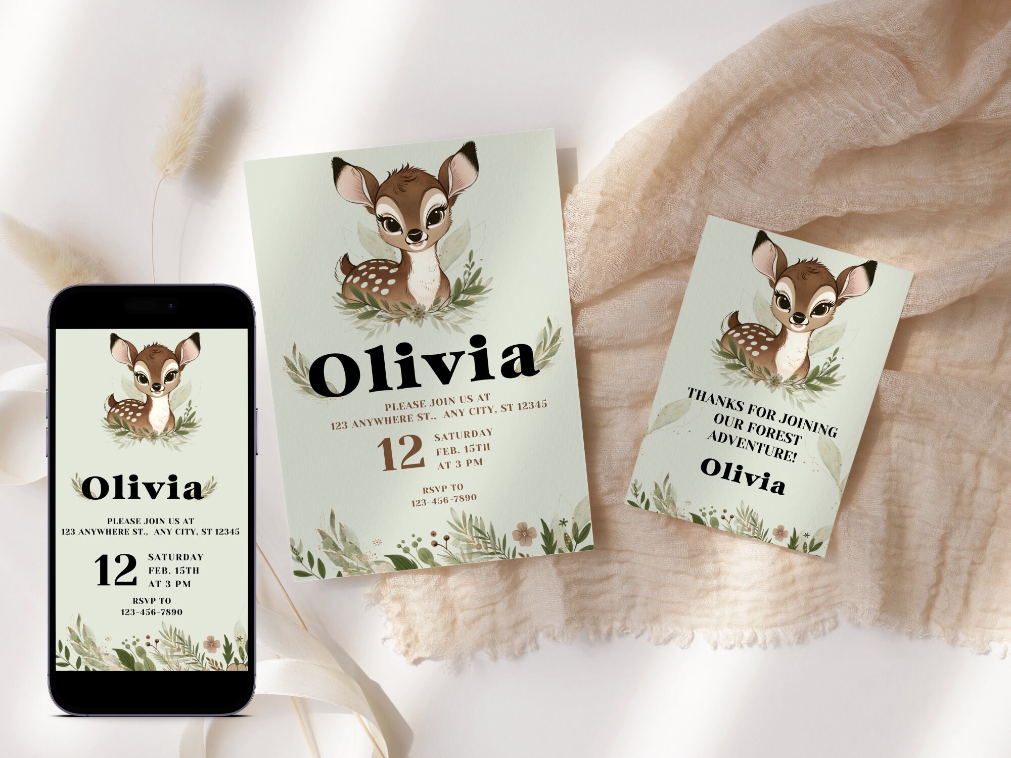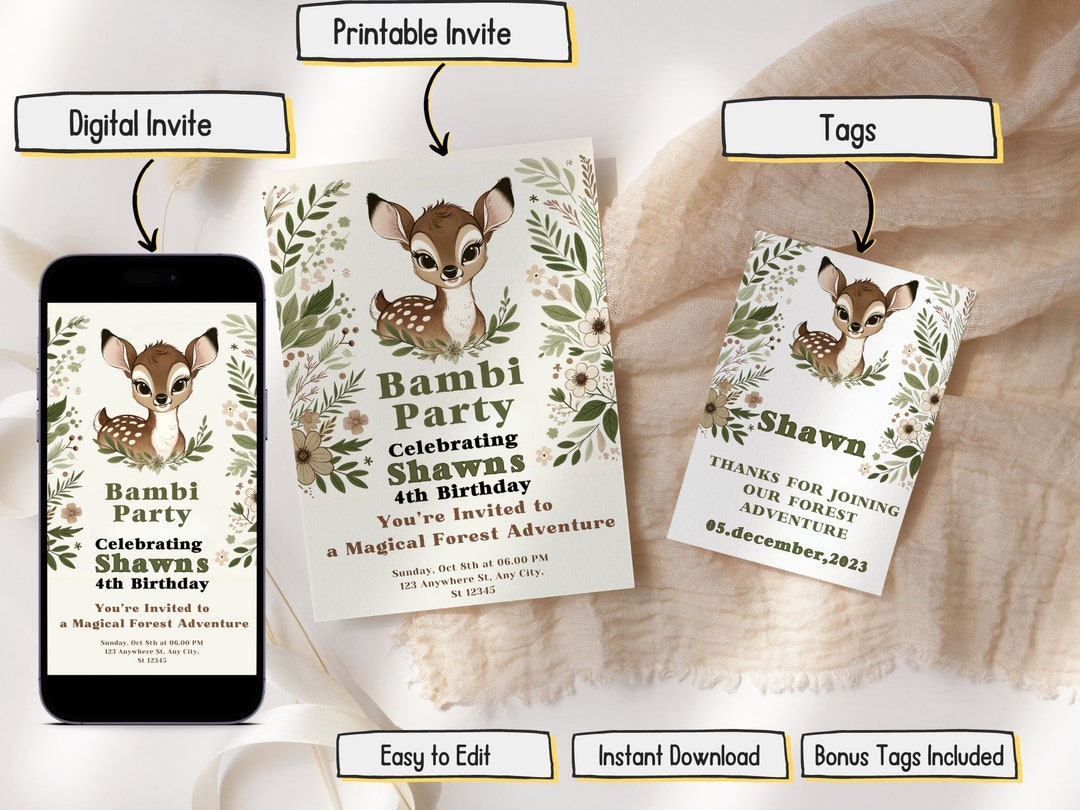 Editable Bambi Invitation Template Bambi Birthday Invitation Etsy