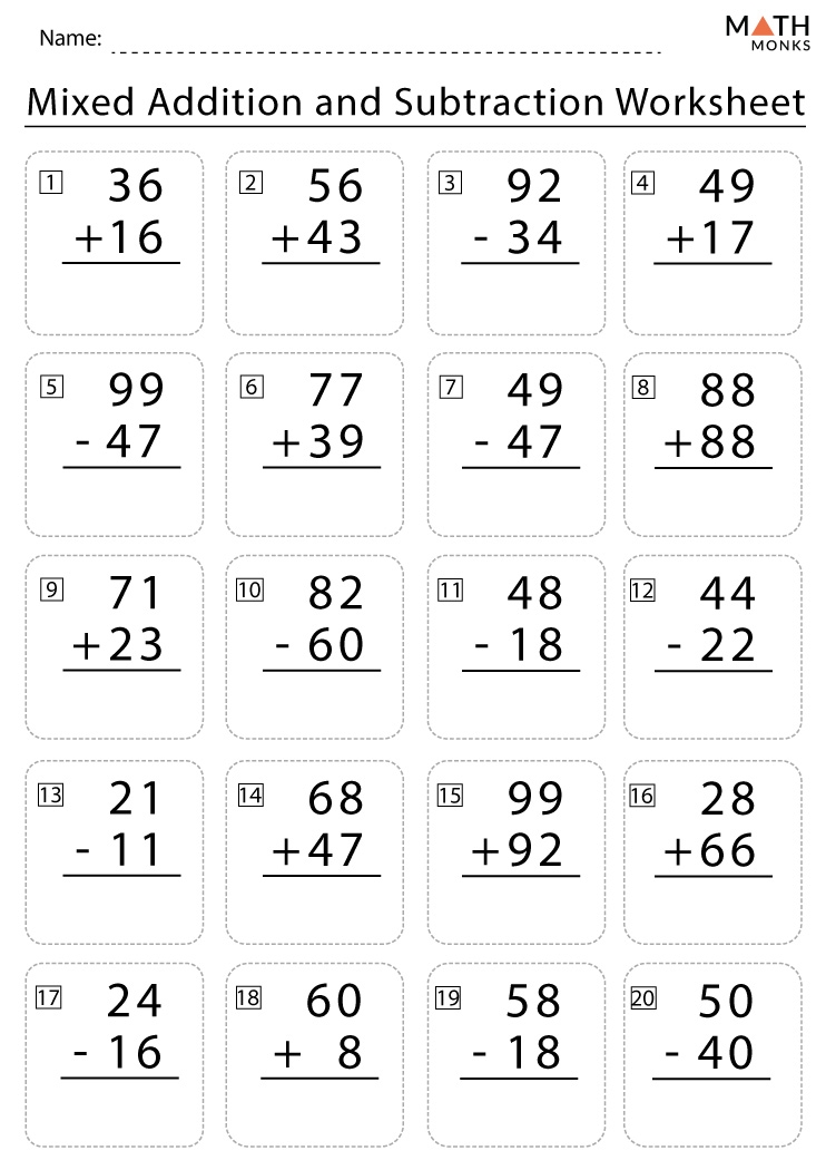 Worksheets provide a structured way for students to practice addition and subtraction problems, helping them to develop fluency and accuracy in these operations. They also help students to understand the concepts behind addition and subtraction, such as combining or taking away quantities. By regularly completing worksheets, students can improve their mental math skills and become more confident in solving math problems.