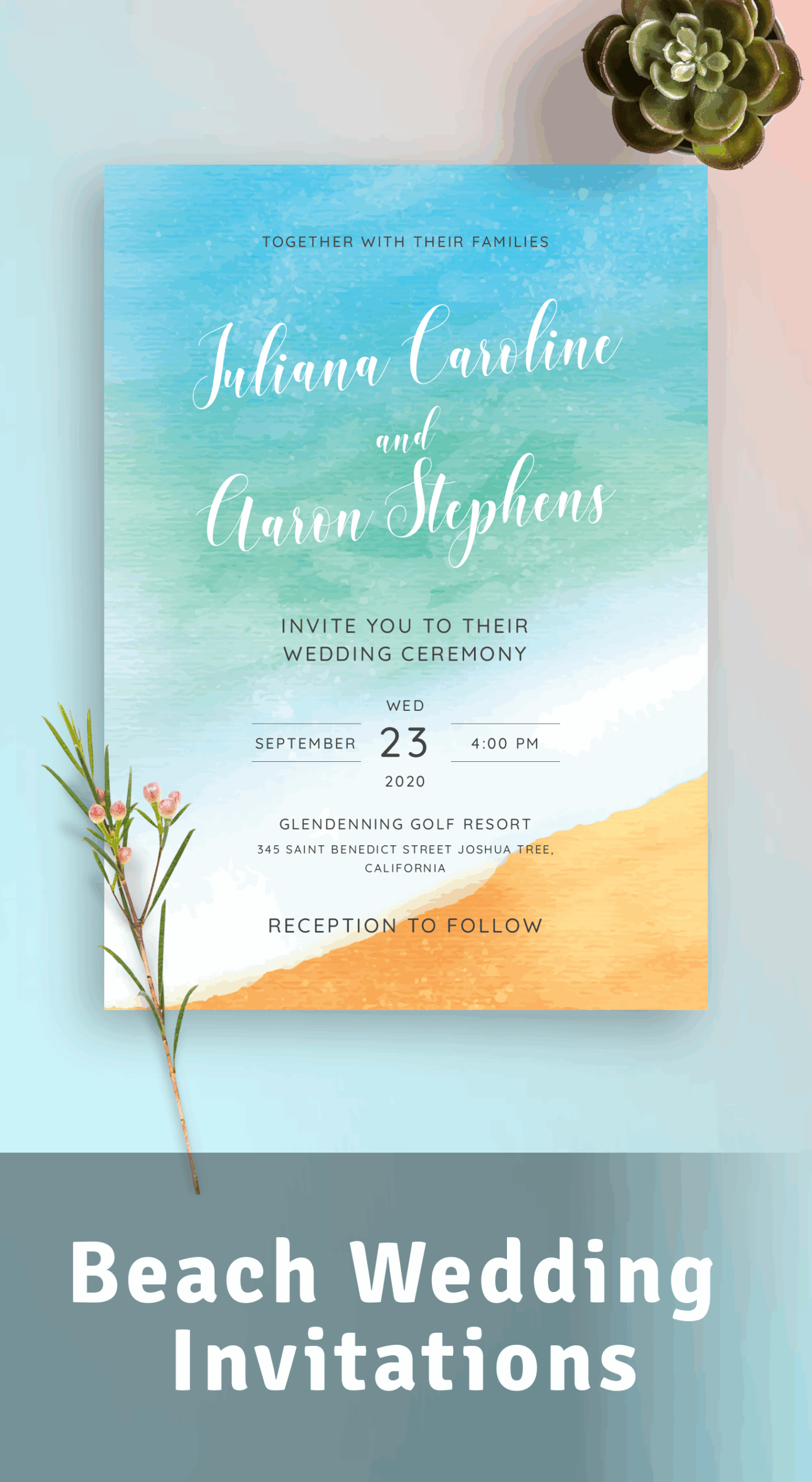 Our beach invitations templates feature beautiful designs that capture the essence of the beach – from palm trees and seashells to sandy shores and crashing waves. You can easily add your own text, images, and details to make the invitations uniquely yours. With just a few clicks, you’ll have professional-looking invitations that will impress your guests and set the stage for a memorable event.