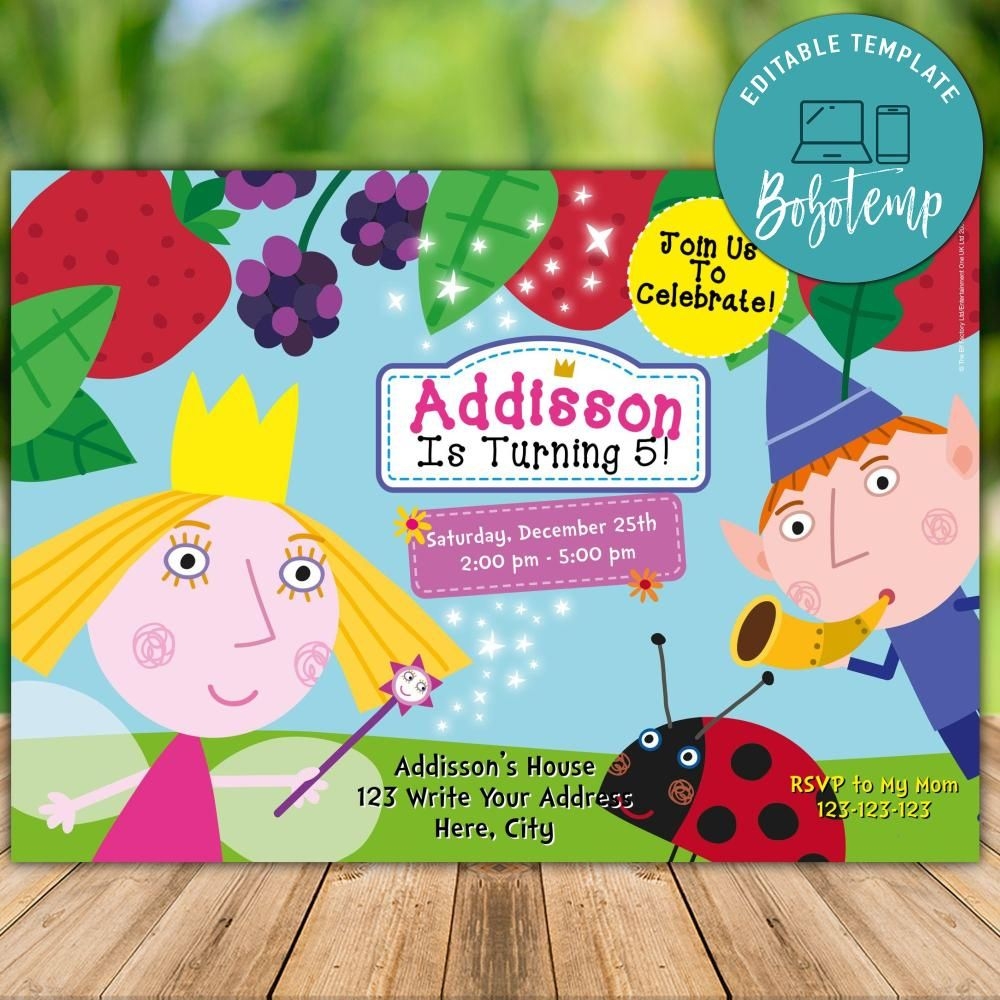 Our templates feature cute images of Ben and Holly, making them perfect for any fan of the popular children’s show. Whether you’re hosting a small gathering or a big celebration, these invitations are sure to set the tone for a fun and memorable party.