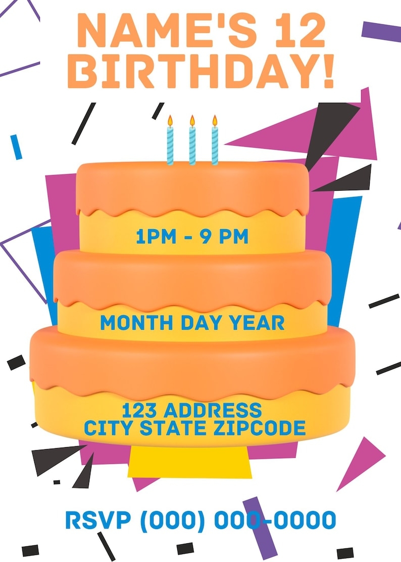 Birthday Cake Invitation Template Canva Editable Download Etsy