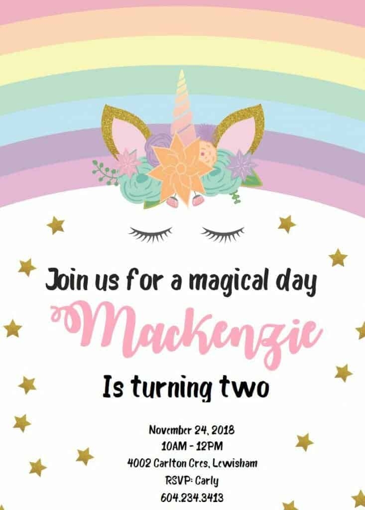 Free Rainbow Unicorn Birthday Invitation Template To Edit Online