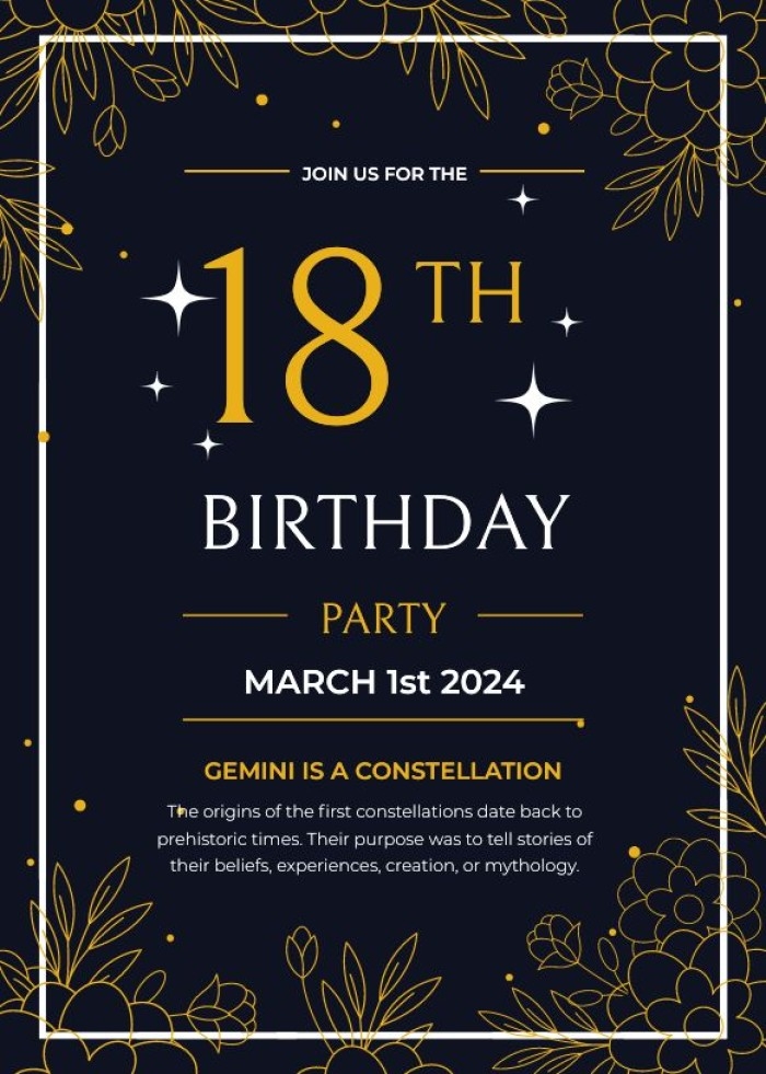 So why settle for a generic invitation when you can create a personalized and stylish one with our template? Your guests will be impressed by your attention to detail and the effort you put into making their experience special. Get started today and make your birthday party one to remember!