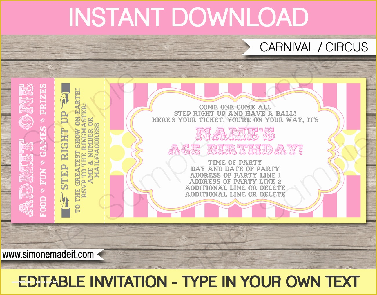 Ticket Invitation Template Free Of Carnival Birthday Ticket Invitation