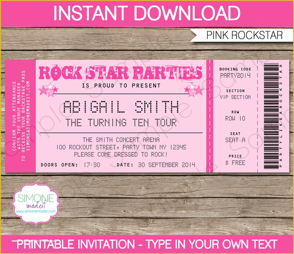 Ticket Invitation Template Free Of Rockstar Birthday Party Ticket