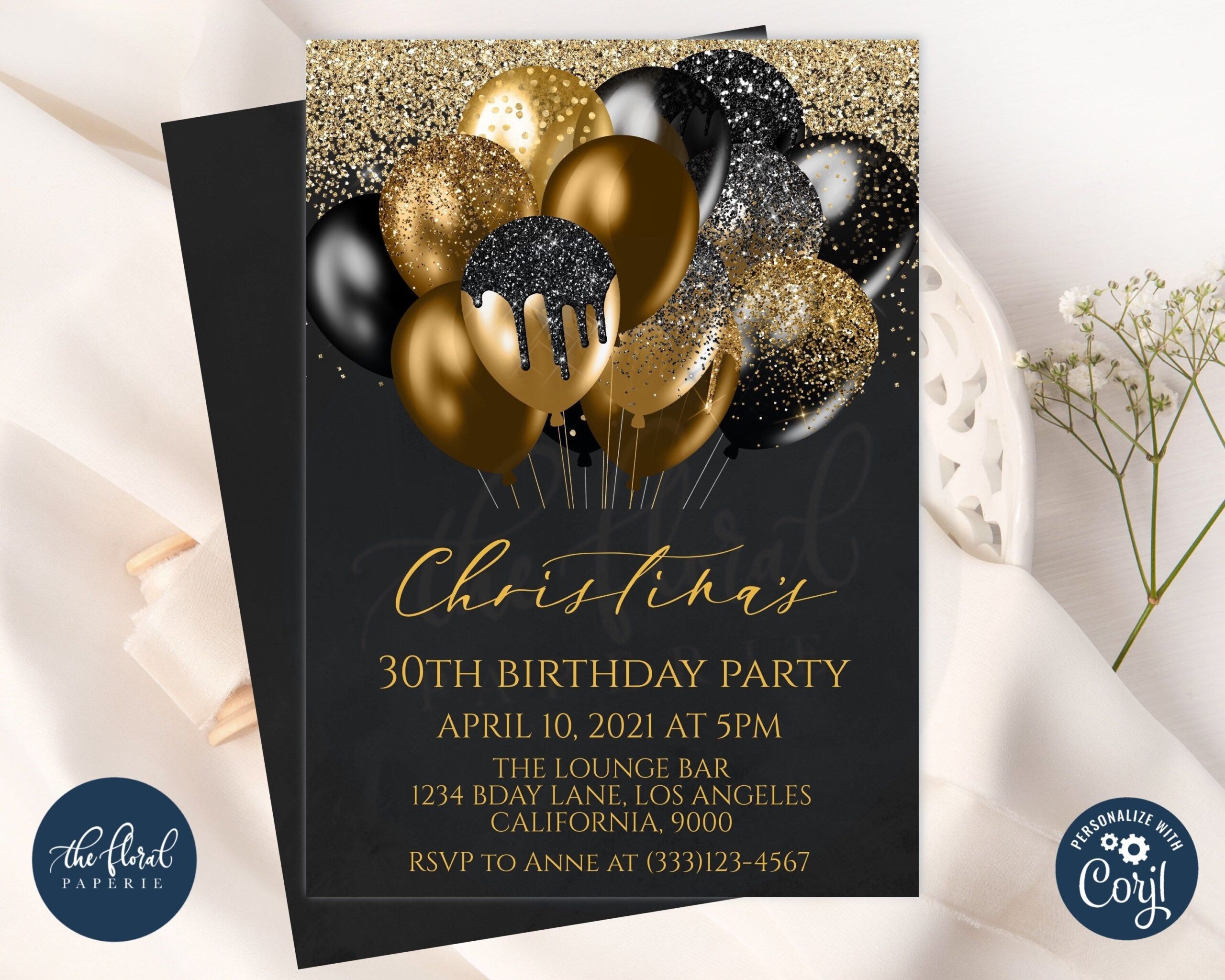 Are you looking for a stylish and elegant birthday invitation template for your upcoming celebration? Look no further than our black and gold birthday invitation template! This sophisticated design is perfect for any age and will set the tone for a glamorous event.