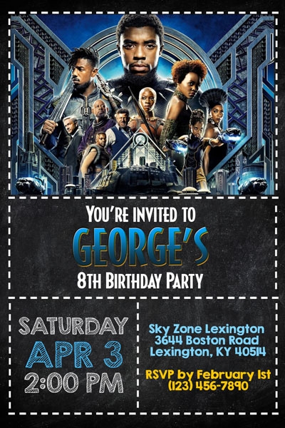 There are several designs to choose from, ranging from bold and colorful to sleek and modern. You can find templates featuring the iconic Black Panther mask, vibranium patterns, or even action-packed scenes from the movie. The options are endless, allowing you to pick the perfect design that fits your party theme.