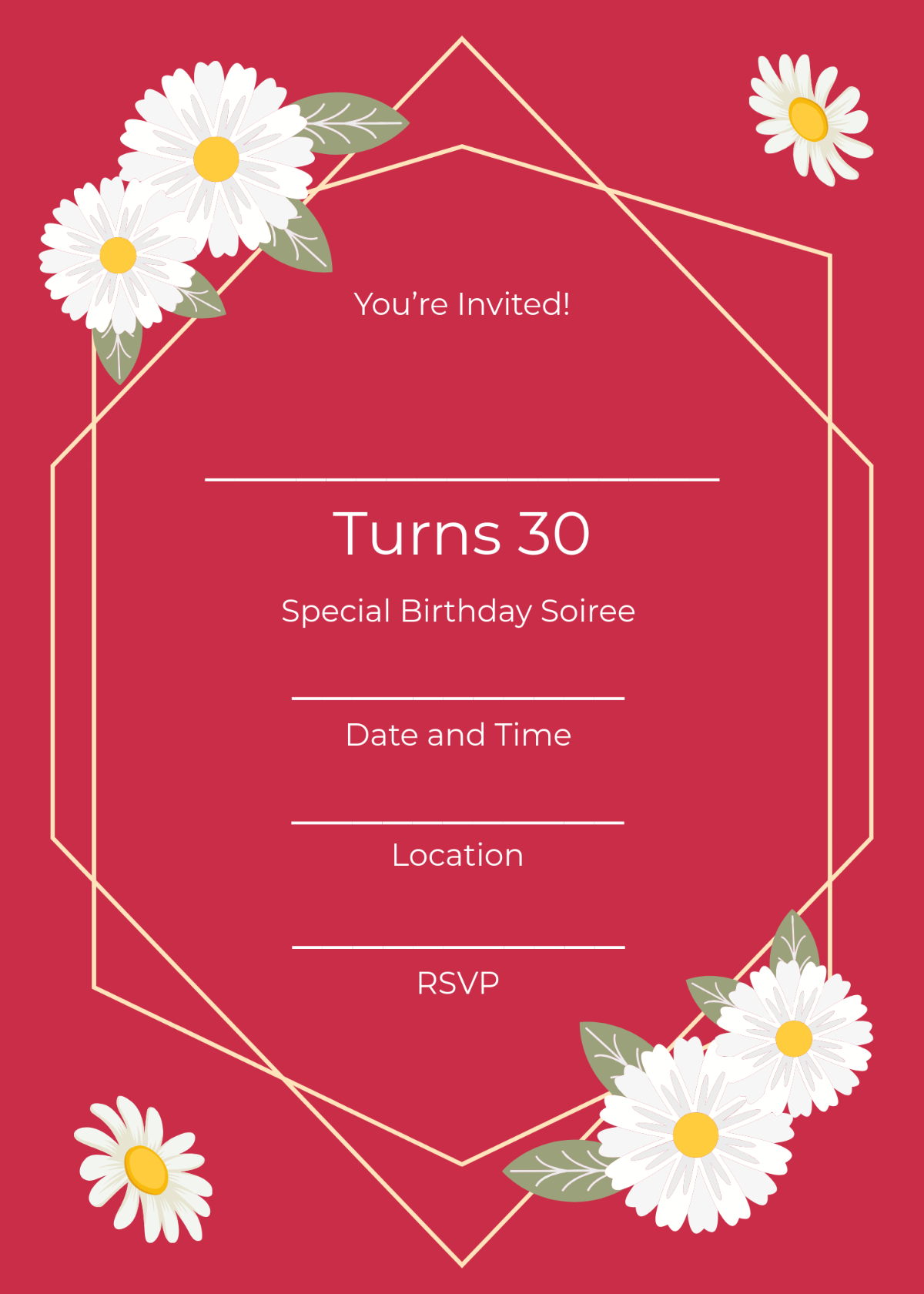 Free Blank Glamorous 30th Birthday Invitation Template To Edit Online