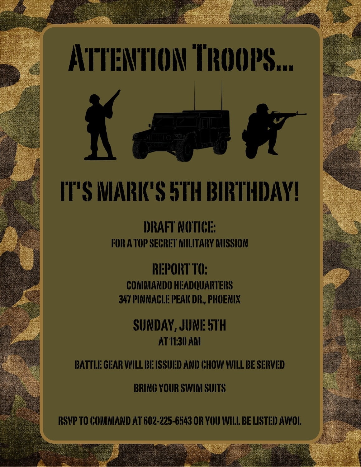 With our blank army invitation template, you have the freedom to add your own text, images, and details to create a personalized invitation that reflects the theme and style of your event. Whether you want to include the guest of honor’s name, the date and time of the event, or any special instructions for attendees, our template allows you to easily customize every aspect of the invitation to suit your needs.