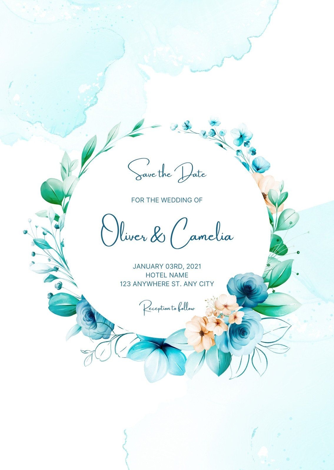 With a blue floral wedding invitation template, you can customize the details to reflect your personal style and wedding theme. Whether you’re planning a formal affair or a more casual celebration, this template can be tailored to suit your needs.