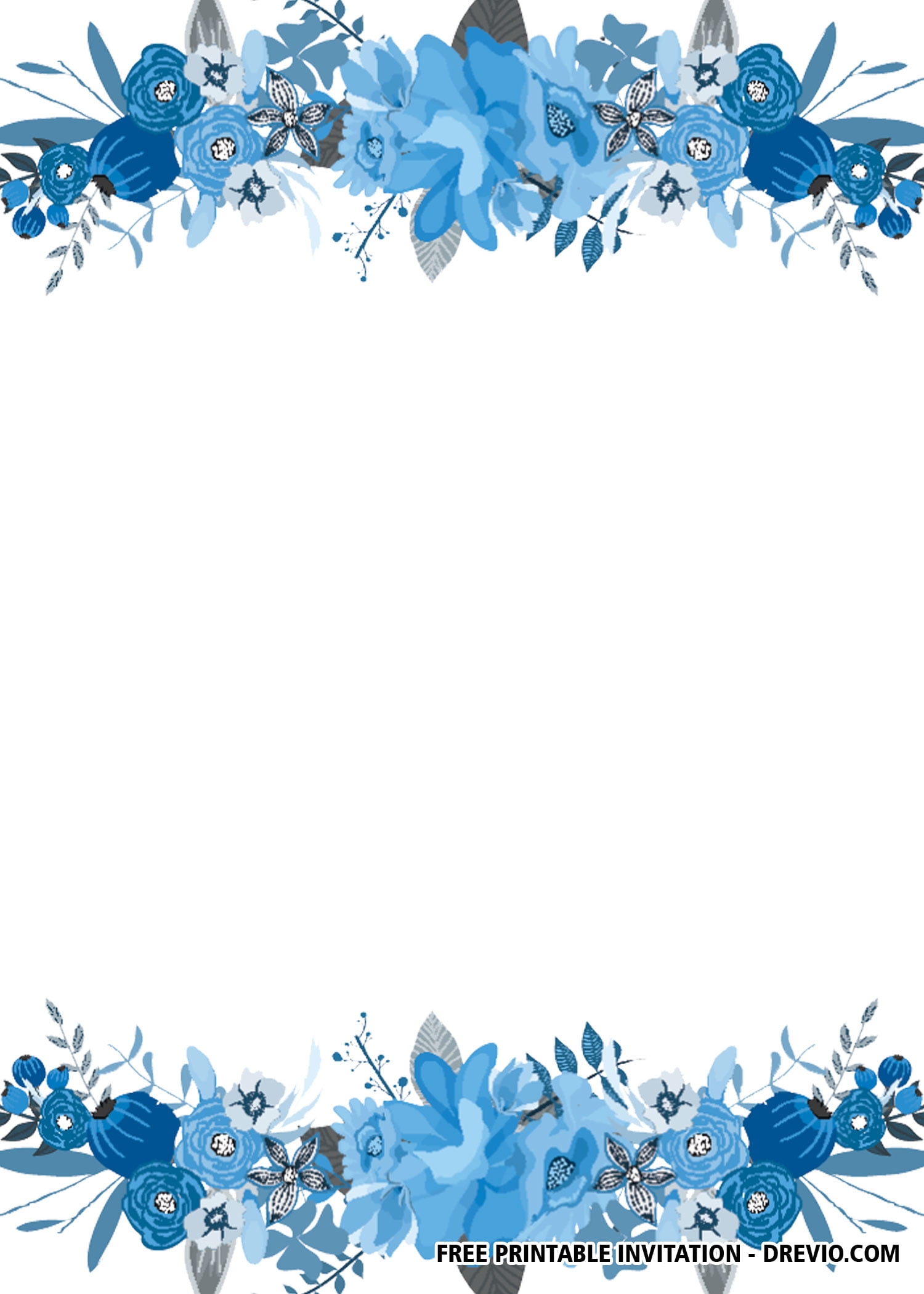 FREE PRINTABLE Blue Borders Wedding Invitation Templates Download