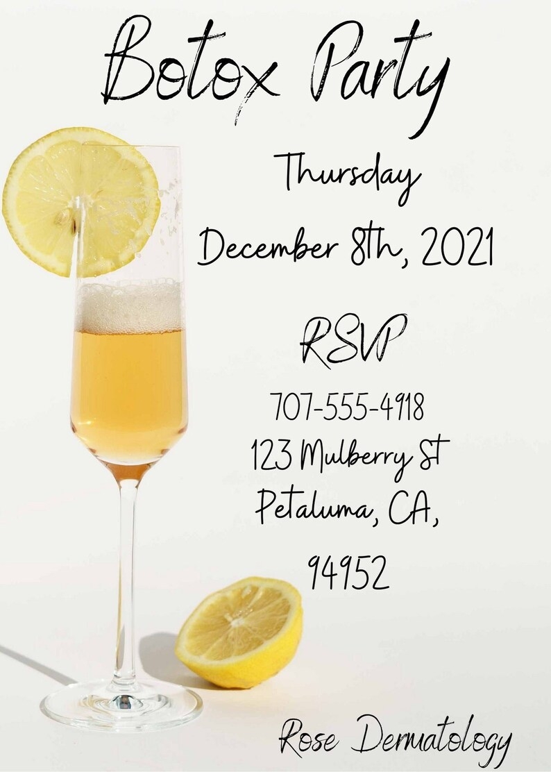 Are you planning a fun and glamorous Botox party with your friends? Look no further, as we have the perfect invitation templates for you! Botox parties are a great way to get together with your friends and enjoy some pampering while getting a little touch-up. With our customizable invitation templates, you can easily set the tone for your party and get everyone excited to attend.