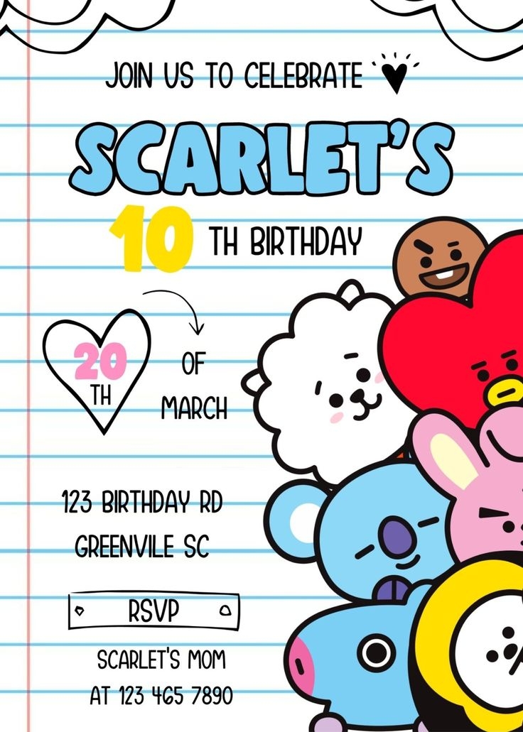 Whether you’re hosting a BT21-themed party or simply want to add a pop of color to your invitations, our BT21 invitation card template is the perfect choice. Your guests will be delighted to receive such a cute and creative invitation, setting the tone for a memorable and enjoyable event. Don’t miss out on this opportunity to make your invitations stand out!