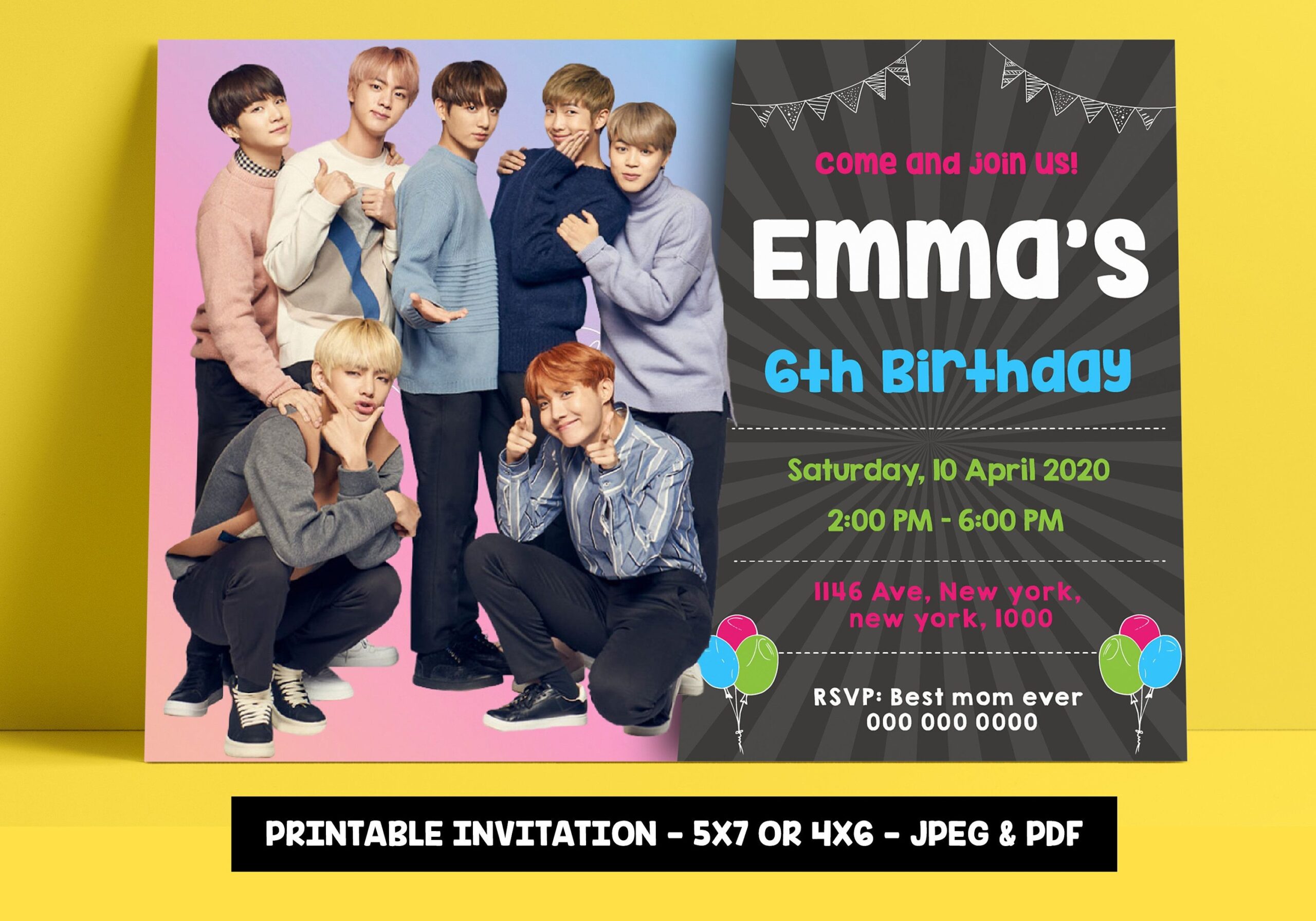 Whether you’re celebrating your own birthday or throwing a party for a fellow BTS fan, our free invitation template is perfect for setting the tone for a fun and exciting event. Simply download the template, customize it with your party details, and send it out to all your guests.