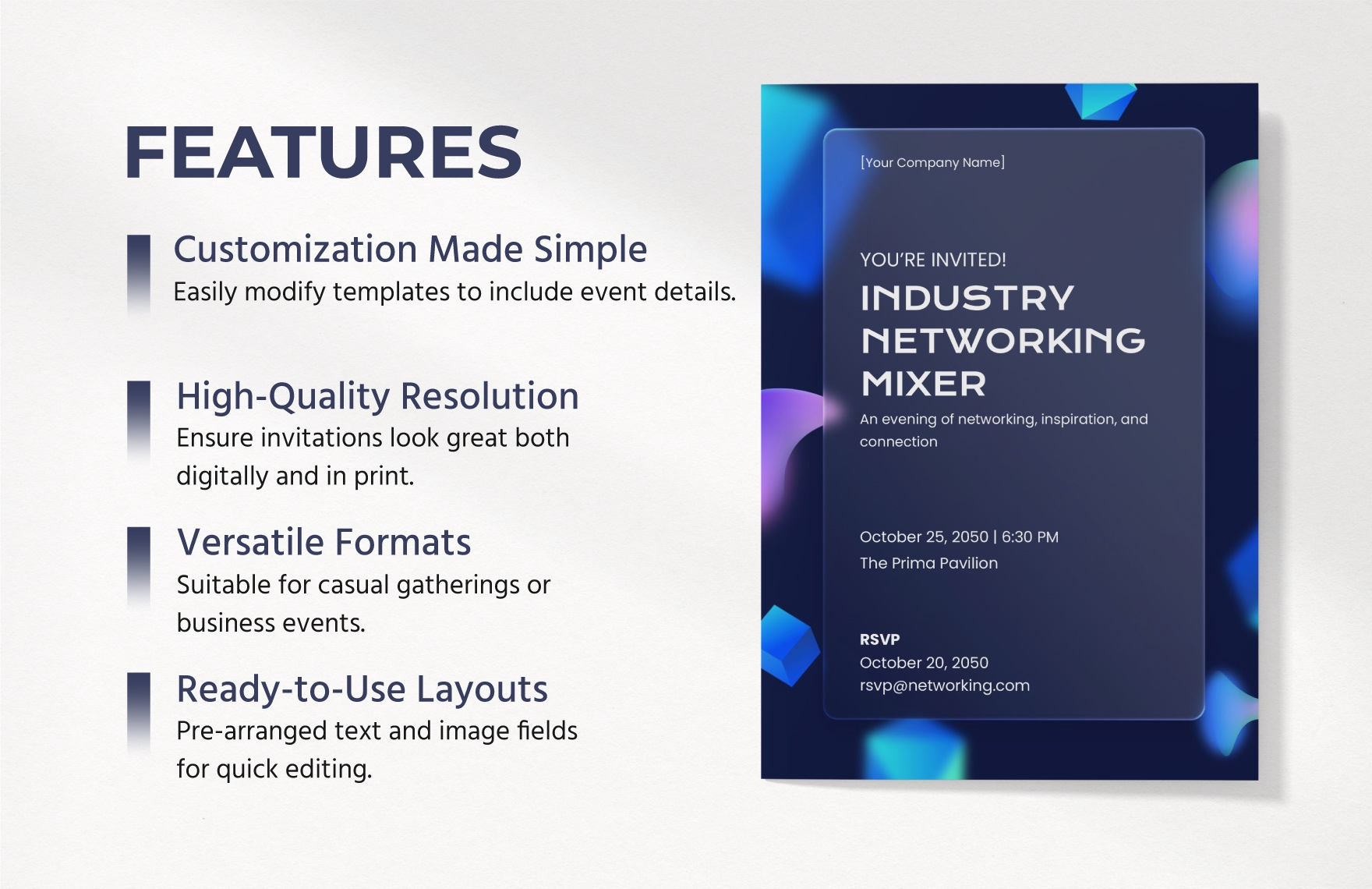 Our business mixer invitation template is designed to help you create a professional and inviting invitation for your event. Whether you are hosting a small networking gathering or a large-scale industry event, our template can be customized to suit your needs.