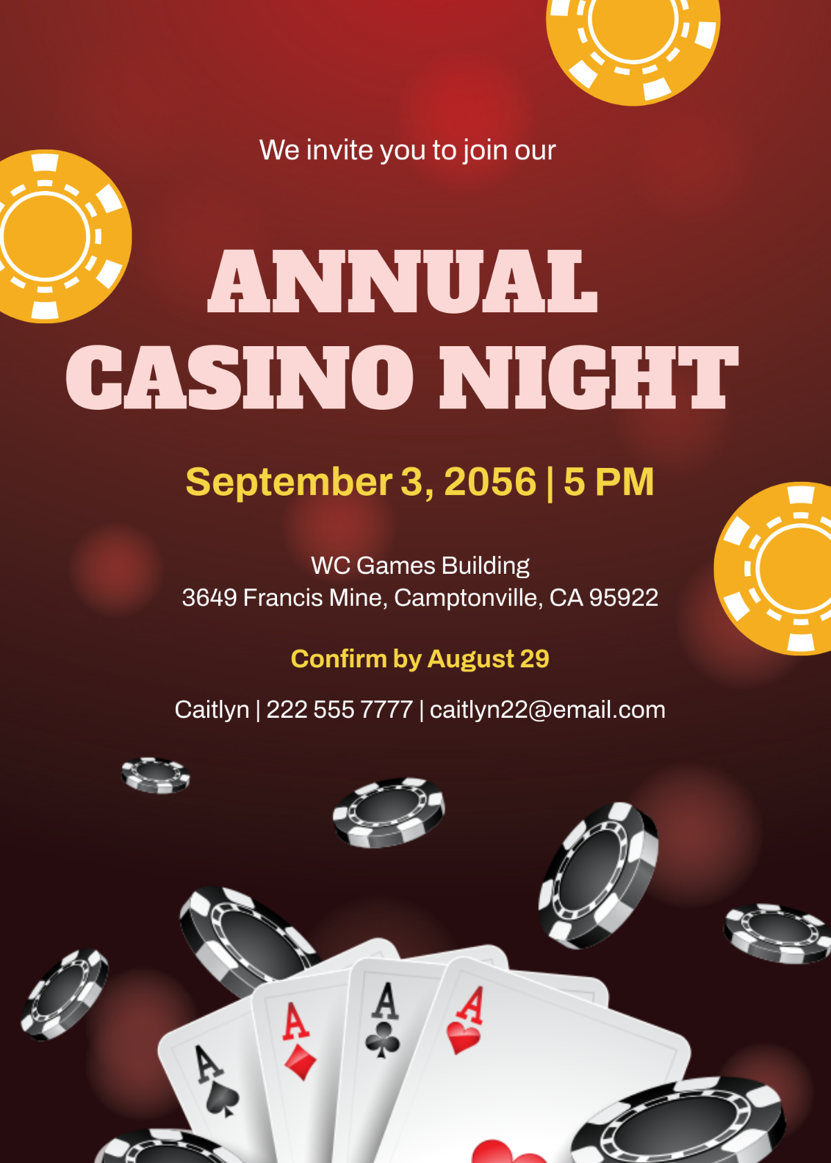 With our casino invitation templates, you can impress your guests from the moment they receive their invite. Set the mood for a night of fun, excitement, and maybe even a little friendly competition. So why wait? Download our free templates today and start planning your unforgettable casino party!