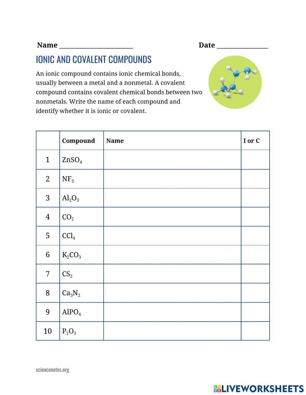 One common type of question on a chemical bonding worksheet is to identify whether a given compound is held together by an ionic or covalent bond. Students must understand the differences between the two types of bonds in order to correctly answer these questions. Ionic bonds are typically formed between metals and nonmetals, while covalent bonds are formed between nonmetals.