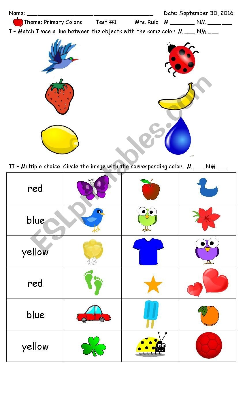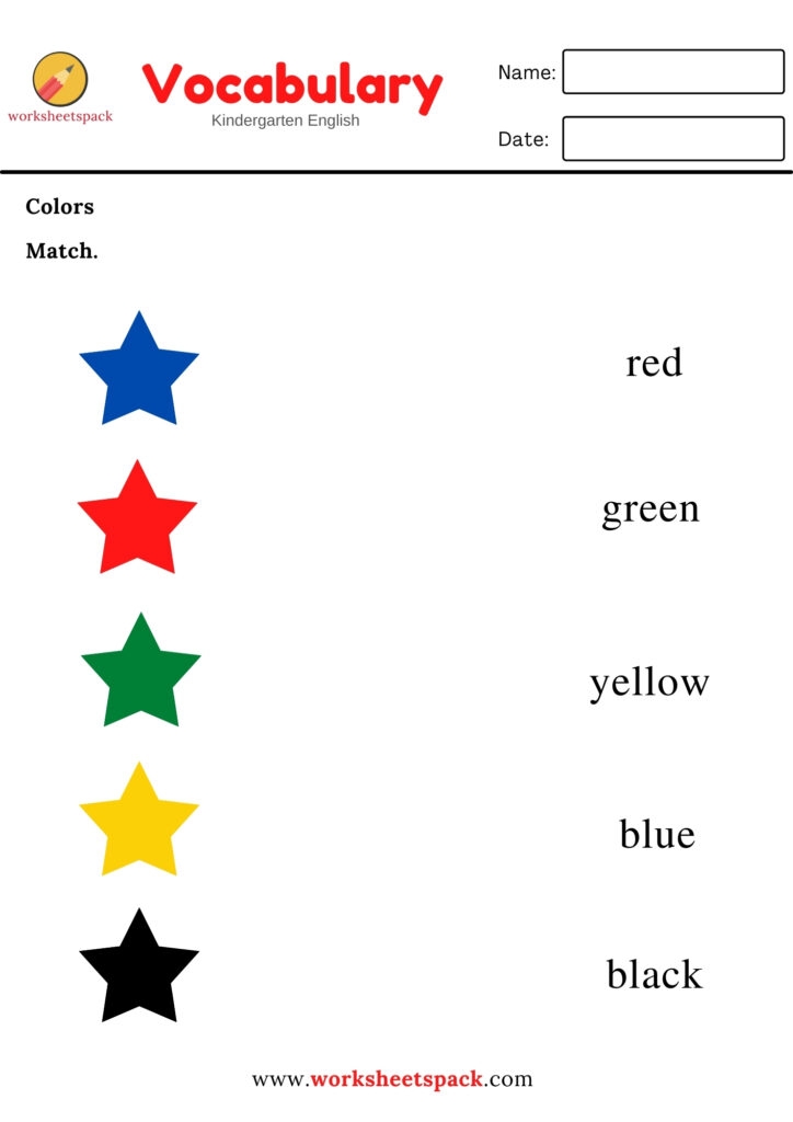 Another popular activity found in colors worksheets for kindergarten is matching colors. Children may be asked to match objects of the same color, such as matching red apples or blue birds, which can help them practice their color recognition skills and improve their visual discrimination abilities.