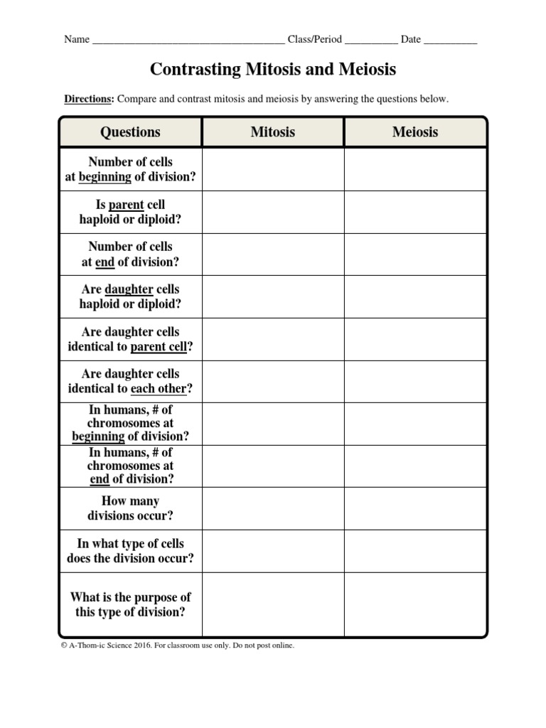 In conclusion, comparing mitosis and meiosis worksheets can enhance students’ comprehension of these fundamental cellular processes. By highlighting the differences in division, purpose, phases, and genetic variation, students can deepen their understanding of how mitosis and meiosis contribute to the growth, development, and reproduction of living organisms.