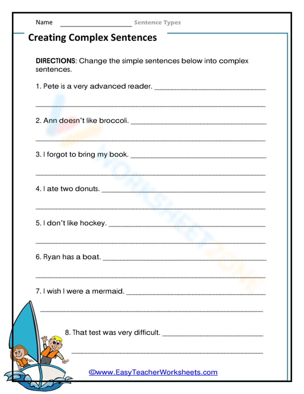 Complex Sentence Worksheet