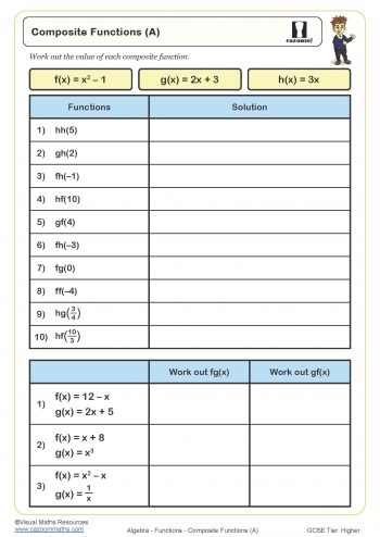 Practicing composite function worksheets can also improve students’ critical thinking skills and problem-solving abilities. By engaging with a variety of composite function problems, students learn to analyze functions, apply mathematical rules and properties, and make connections between different concepts within mathematics.