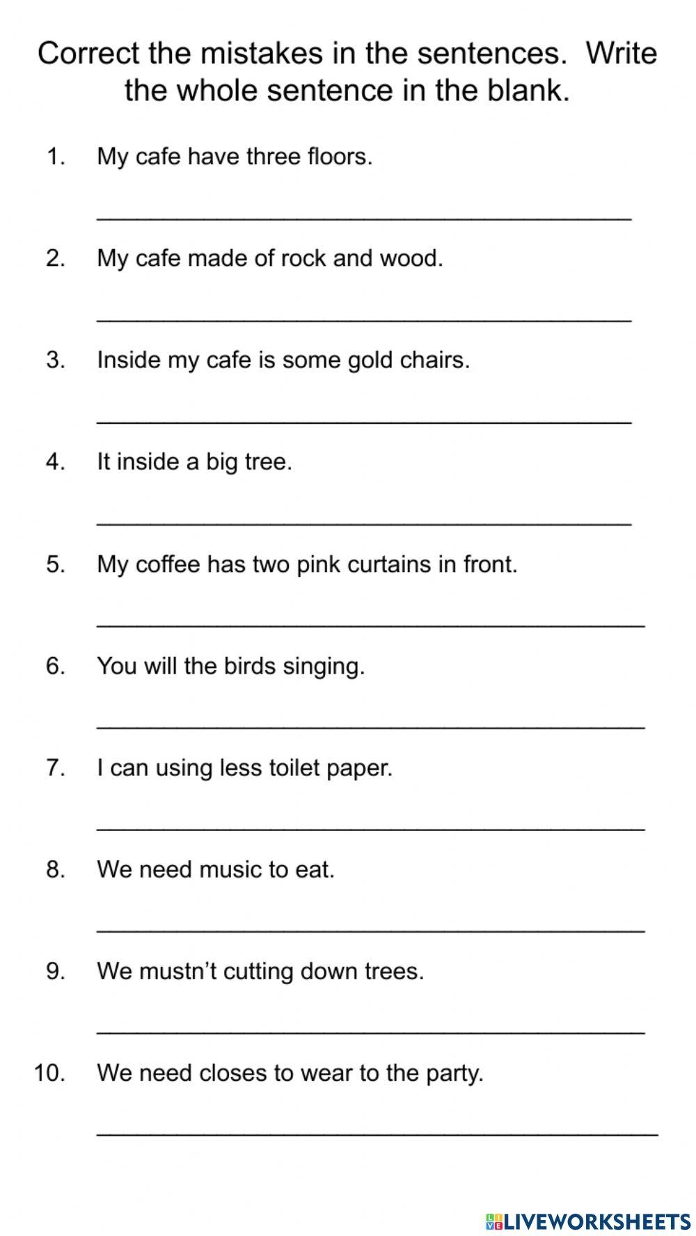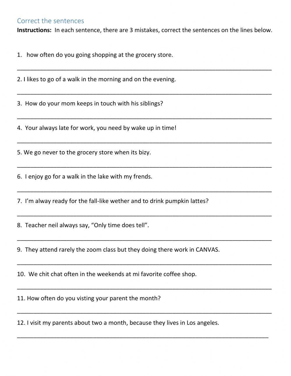 Correct the sentence worksheets are designed to help students identify and correct errors in sentence structure. These worksheets typically contain a series of sentences with grammatical mistakes such as incorrect punctuation, subject-verb agreement, or word order. By working through these worksheets, students can practice recognizing and correcting these errors, ultimately improving their writing skills.
