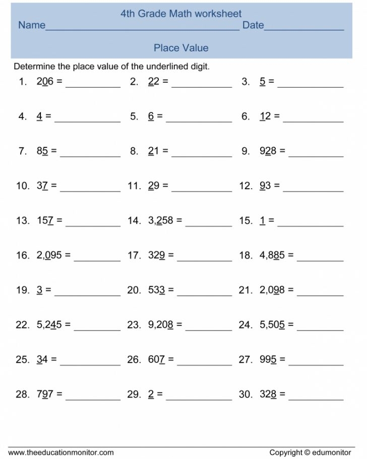 These worksheets typically include exercises such as identifying the place value of digits in decimal numbers, comparing and ordering decimal numbers, and performing operations like addition, subtraction, multiplication, and division with decimals. These activities help students become proficient in working with decimal numbers and build a strong foundation for future math concepts.