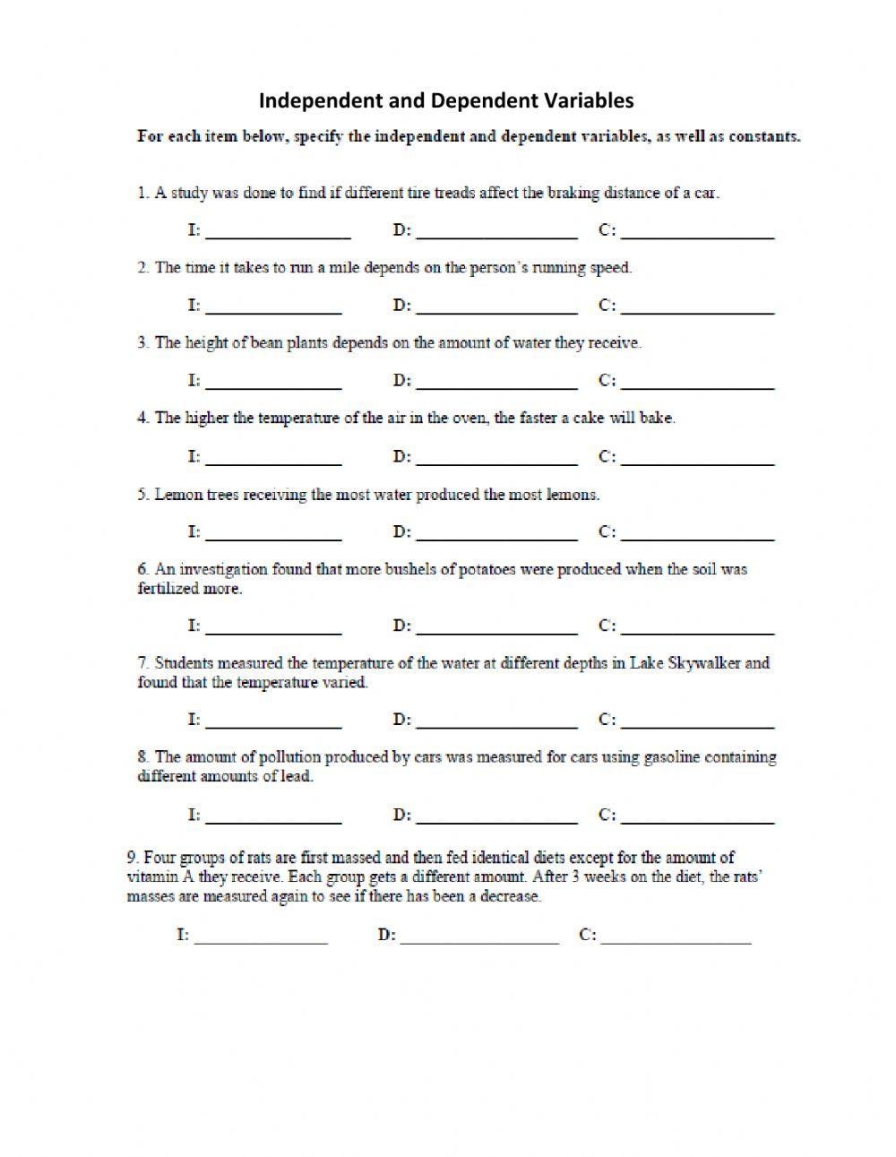 A dependent variable worksheet typically consists of a series of questions or scenarios that require the participant to identify the dependent variable in each situation. These worksheets can be tailored to specific research topics or experiments, making them a versatile tool for learning about dependent variables.