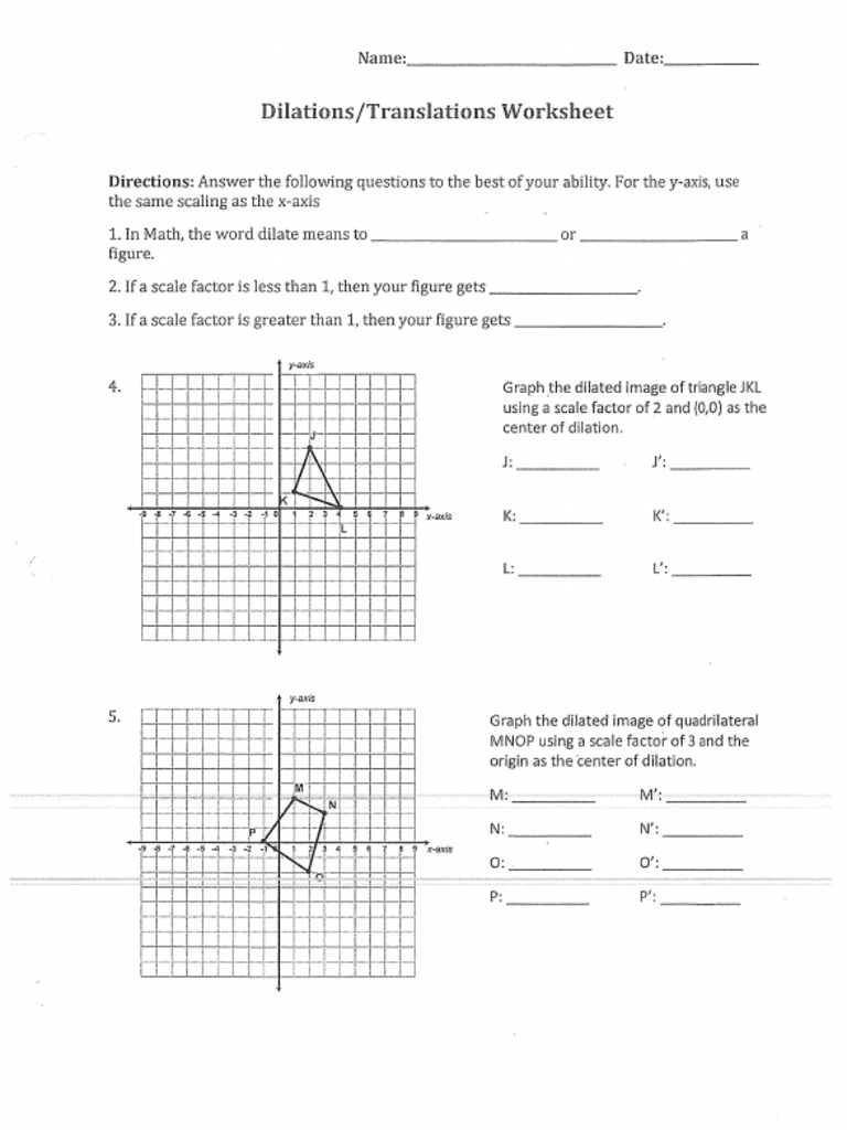 Download Dilations Worksheet with Answers PDF