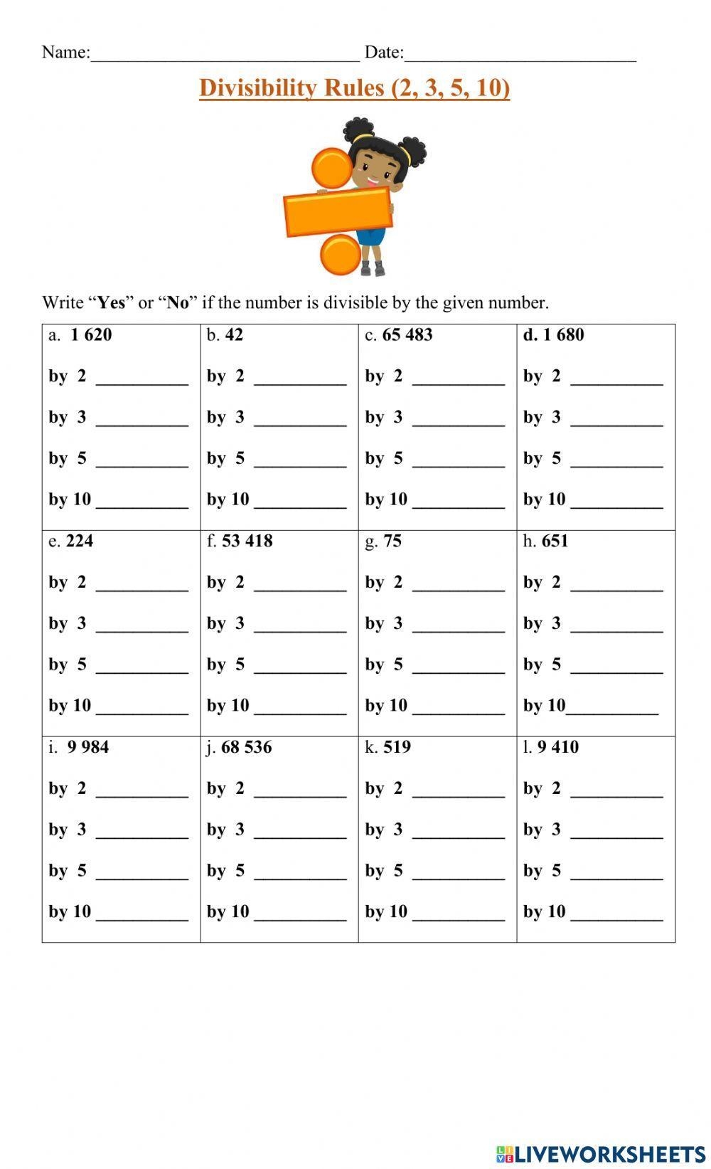 Divisibility is an important concept in mathematics that helps us understand how numbers can be evenly divided by other numbers. It is a fundamental skill that students need to master in order to succeed in more advanced math topics. One way to practice and reinforce this concept is through the use of divisibility worksheets.