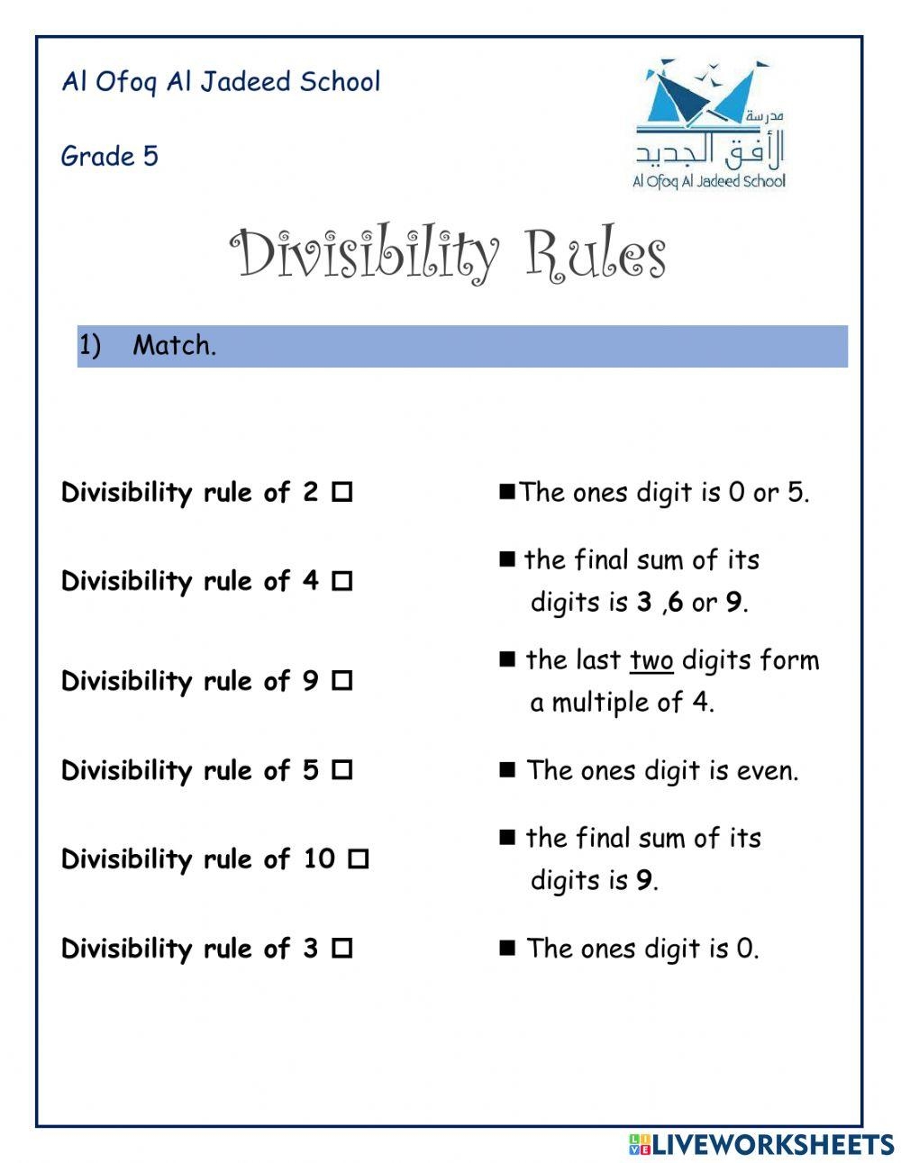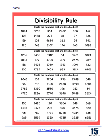 Divisibility worksheets are educational tools that provide students with practice problems to help them understand the rules of divisibility. These worksheets typically include a series of numbers and ask students to determine if each number is divisible by a given divisor. By working through these problems, students can improve their ability to recognize patterns and rules related to divisibility.