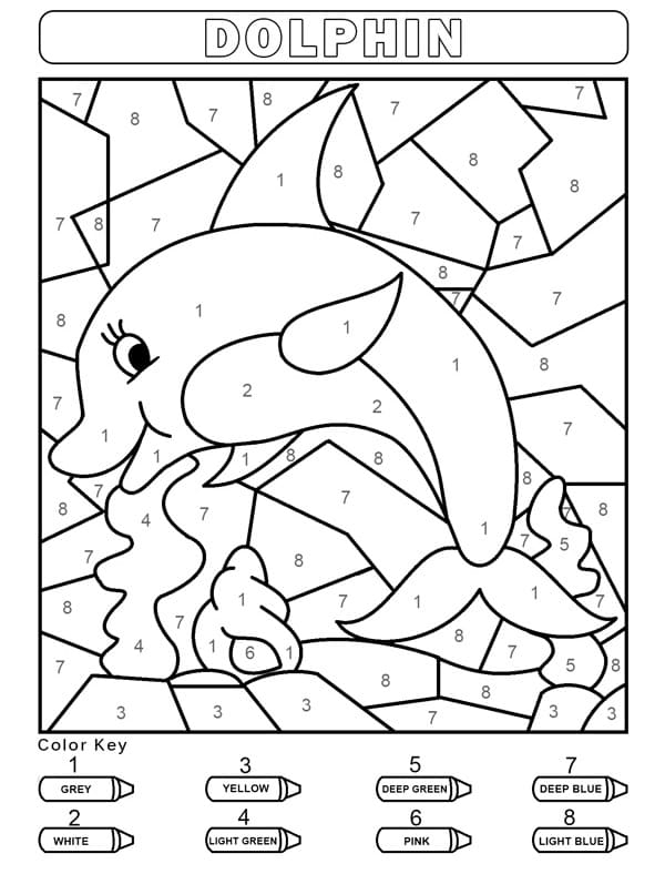 Cute Dolphin Color By Number Coloring Page Free Printable Coloring
