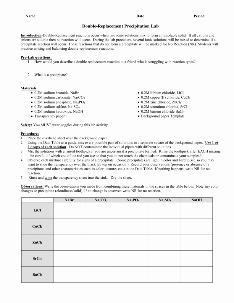Overall, double replacement reaction worksheets are valuable tools for students to practice and improve their understanding of chemical reactions. By completing these worksheets, students can develop their skills in predicting products, balancing equations, and identifying the types of reactions that take place. These worksheets provide students with the opportunity to apply their knowledge of double replacement reactions in a structured and organized manner, helping them to build a solid foundation in chemistry.