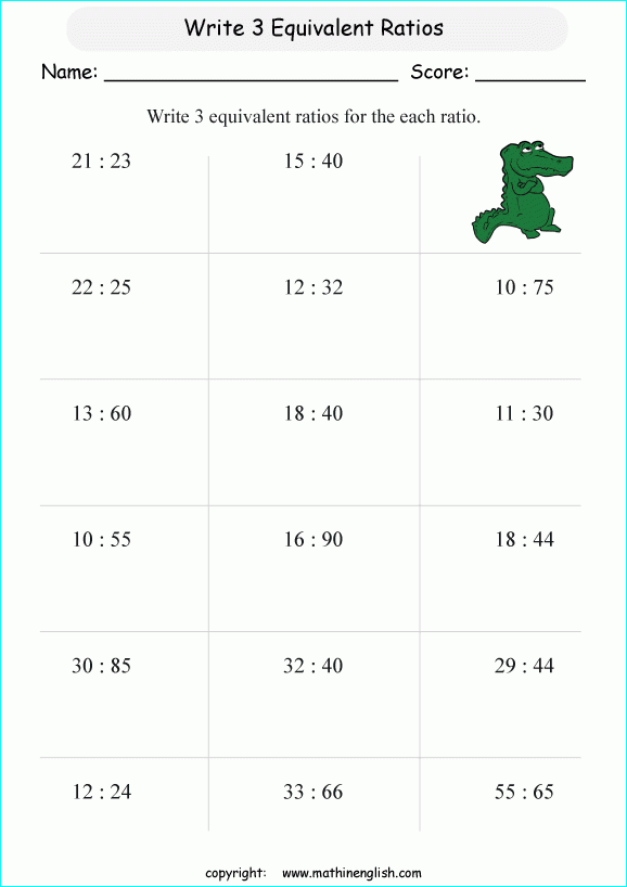Equivalent Ratios Worksheet Grade 6